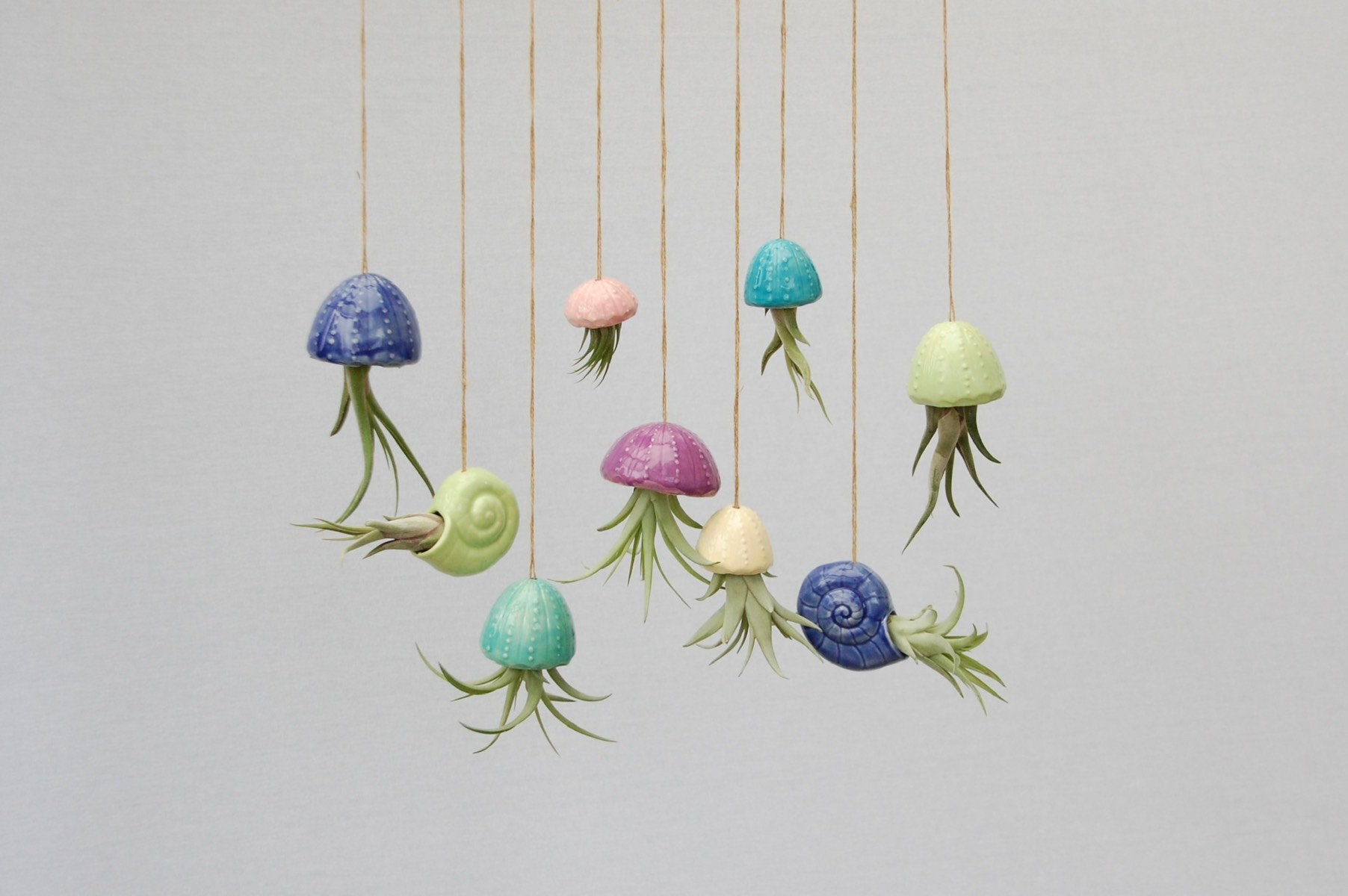 Bodenfreies Haus Luftpflanze 1 X Hangende Tillandsia Qualle Seeigelschale Ebay